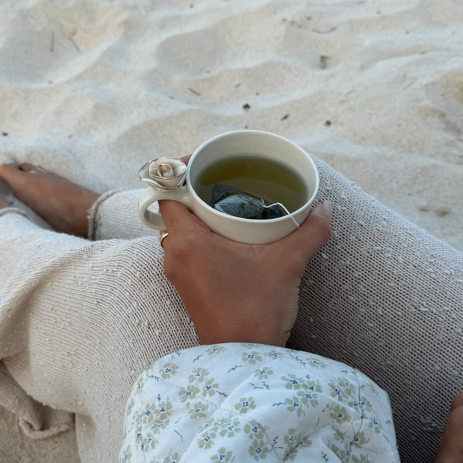 Seamlessly integrating art and beauty, the Bébé Rose Mug adds quant elegance to your every day enjoyment rituals. Featuring a ring-like handle and 24 Carat Gold detailing on the rose petals.